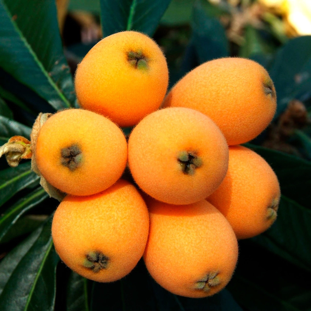 As frutas da nespereira são ovais, com três a 5 cm, com uma casca aveludada e macia de cor amarelo-alaranjada, às vezes rosada. A polpa é suculenta e doce ou ácida, dependendo da variedade e maturação da fruta. Dependendo da variedade, cada fruta pode conter 1 a 5 sementes de cor marrom (castanha) plenamente desenvolvidas e outras muito mais pequenas que não se desenvolveram. A casca da nêspera é fina e pode ser facilmente puxada quando a fruta está madura.